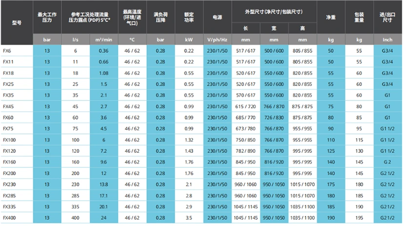 Mențineți capacitatea de răcire în diferite condiții de funcționare și mențineți un punct de rouă sub presiune stabil pentru a evita riscul de înghețare și blocare a condensului.