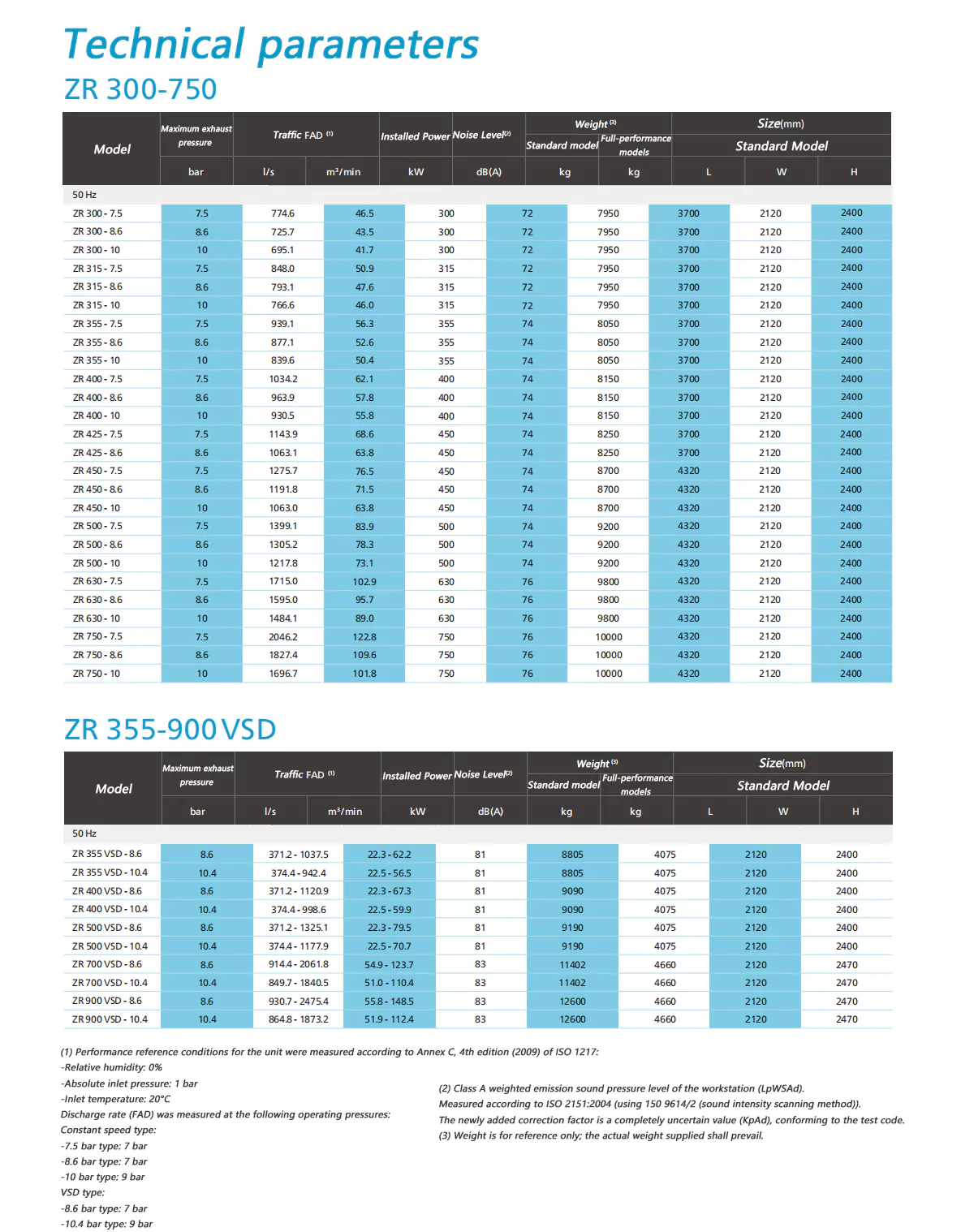 Tehnologia cu șuruburi mature Z fără ulei, modele ZR răcite cu apă