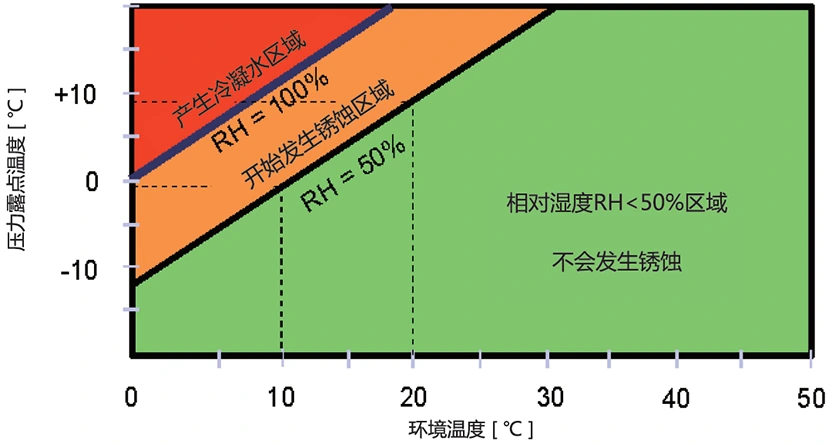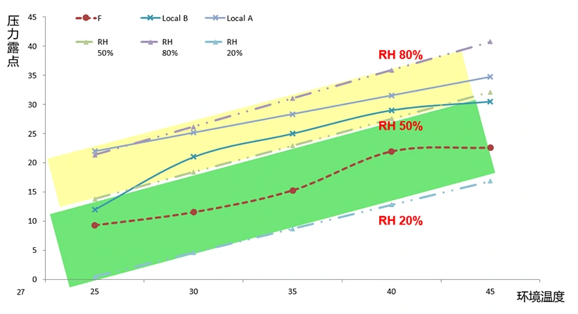 După cum se arată în datele măsurate de mai jos, cu o presiune de intrare a aerului comprimat de 7 bar, o temperatură de intrare de 35 ° C, un punct de rouă sub presiune de 7 ° C și o temperatură finală de evacuare de 25 ° C, umiditatea relativă a aerului este de 30%, prevenind eficient coroziunea conductelor și a echipamentelor care utilizează aer.