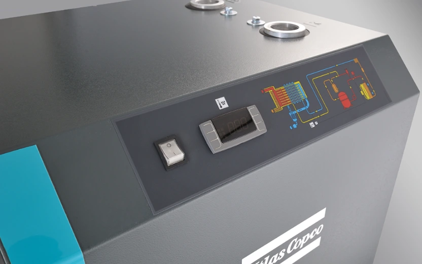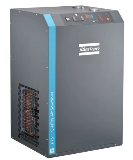 Uscătorul de aer frigorific de tip F Atlas Copco utilizează un schimbător de căldură trei în unu care combină separatoare de aer/aer, aer/refrigerant și apă. Acest lucru elimină eficient apa lichidă separată după răcire și pre-răciește aerul comprimat, îmbunătățind eficiența schimbului de căldură.