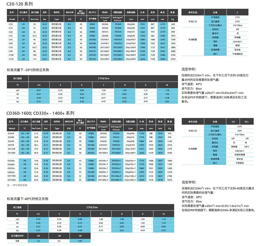 ■ Uscătorul fără căldură cu adsorbție regenerativă din seria C este potrivit în special pentru aplicații cu volume mici de aer.